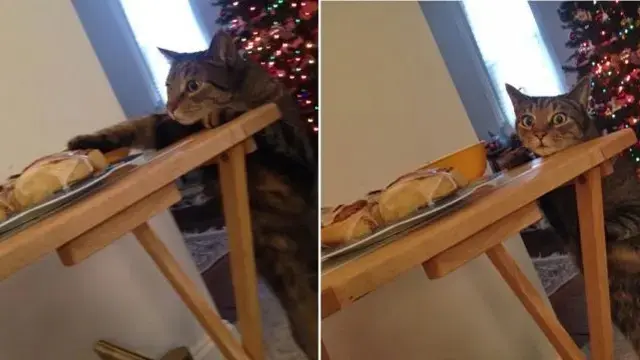 7. Ekspresi kucinya ketika ketahuan mau mencuri makanan lucu banget
