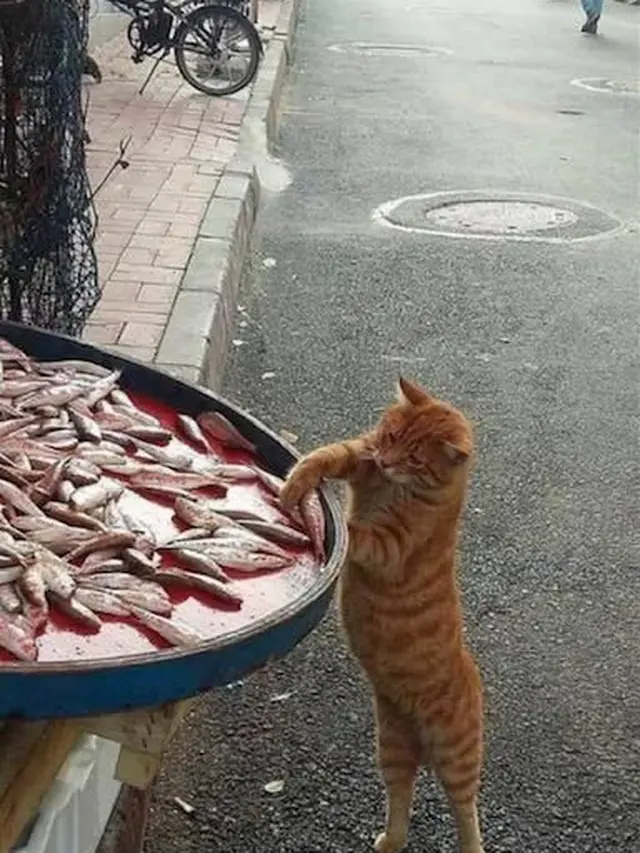 9. Kucing oren memang paling bandel, suka mencuri ikan